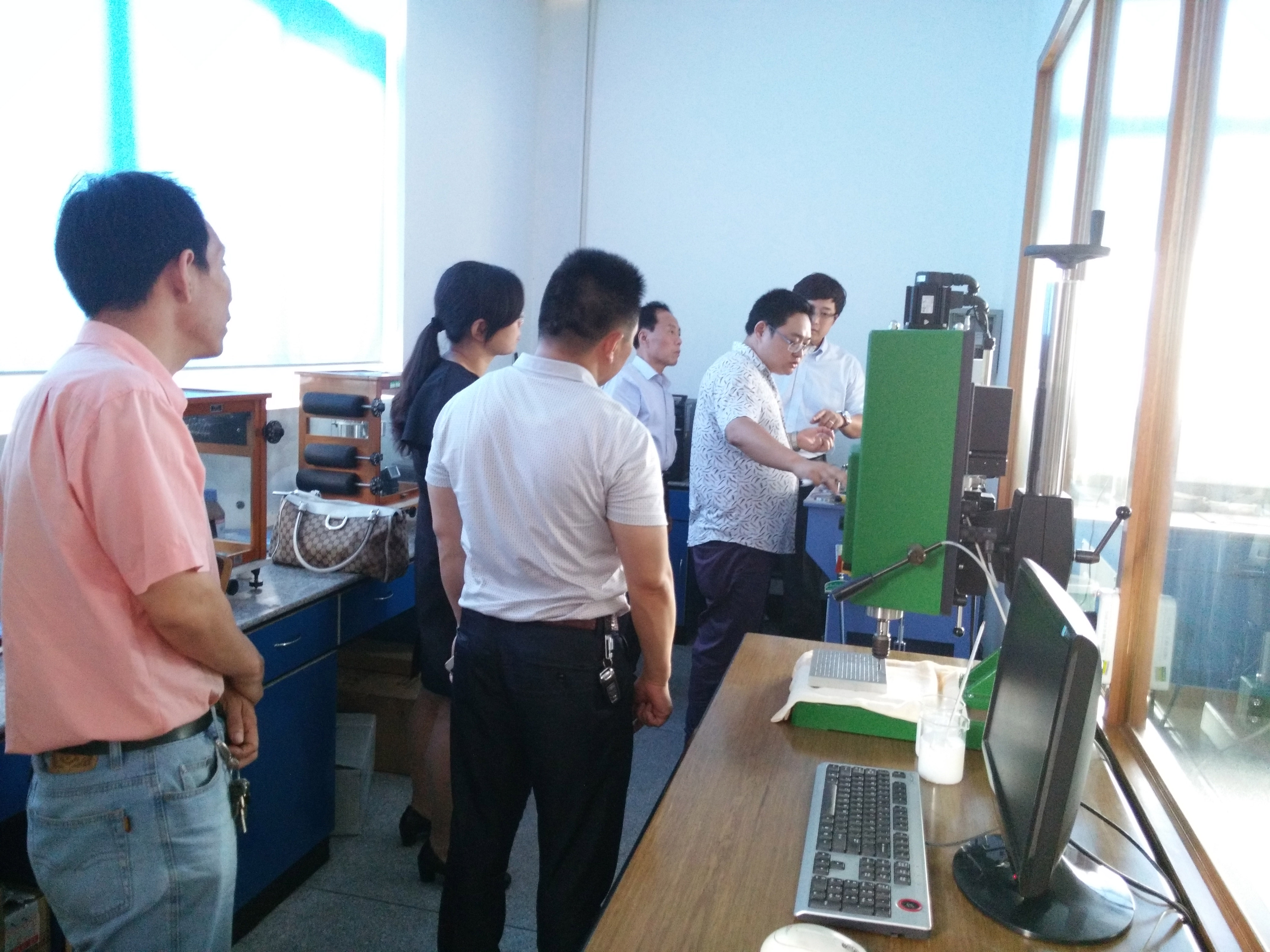 黃經理一行先后參觀了我司生產區、倉儲區及研發中心等,科星公司技術部王凱華部長向客人進行四球磨損試驗和攻絲扭矩試驗操作講解(如圖二所示)。黃經理表示對雙方目前合作充滿了信心,并期望未來能強強聯動,實現更深層次的商務合作。