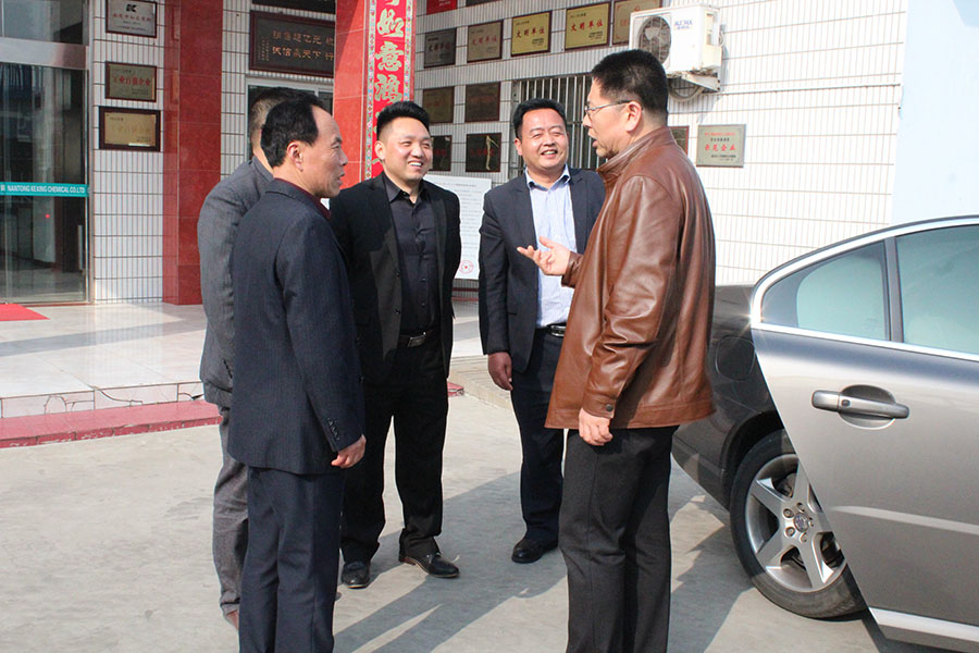 前左隆基集團技術總工王軍、前中隆基集團總經理劉玉里、前右科星化工董事長吳龍鐵、后排左科星化工銷售副總吳昌祥、后排中科星化工銷售經理朱小明、后排右科星化工總經理傅士超