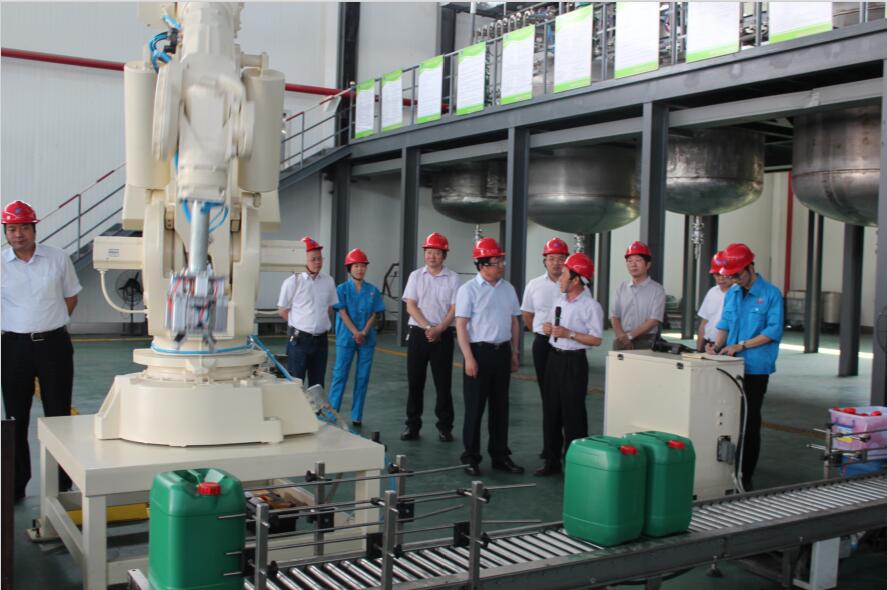調研期間,顧縣長一行領導首先來到自動化生產車間流水線及機器人智能碼垛現場。14條生產流水線用工11人,可年產各類產品10萬余噸,營業收入15億元以上。整個生產現場安全保障措施可控,環境保護切實可行,自動化智能化生產效能極高。