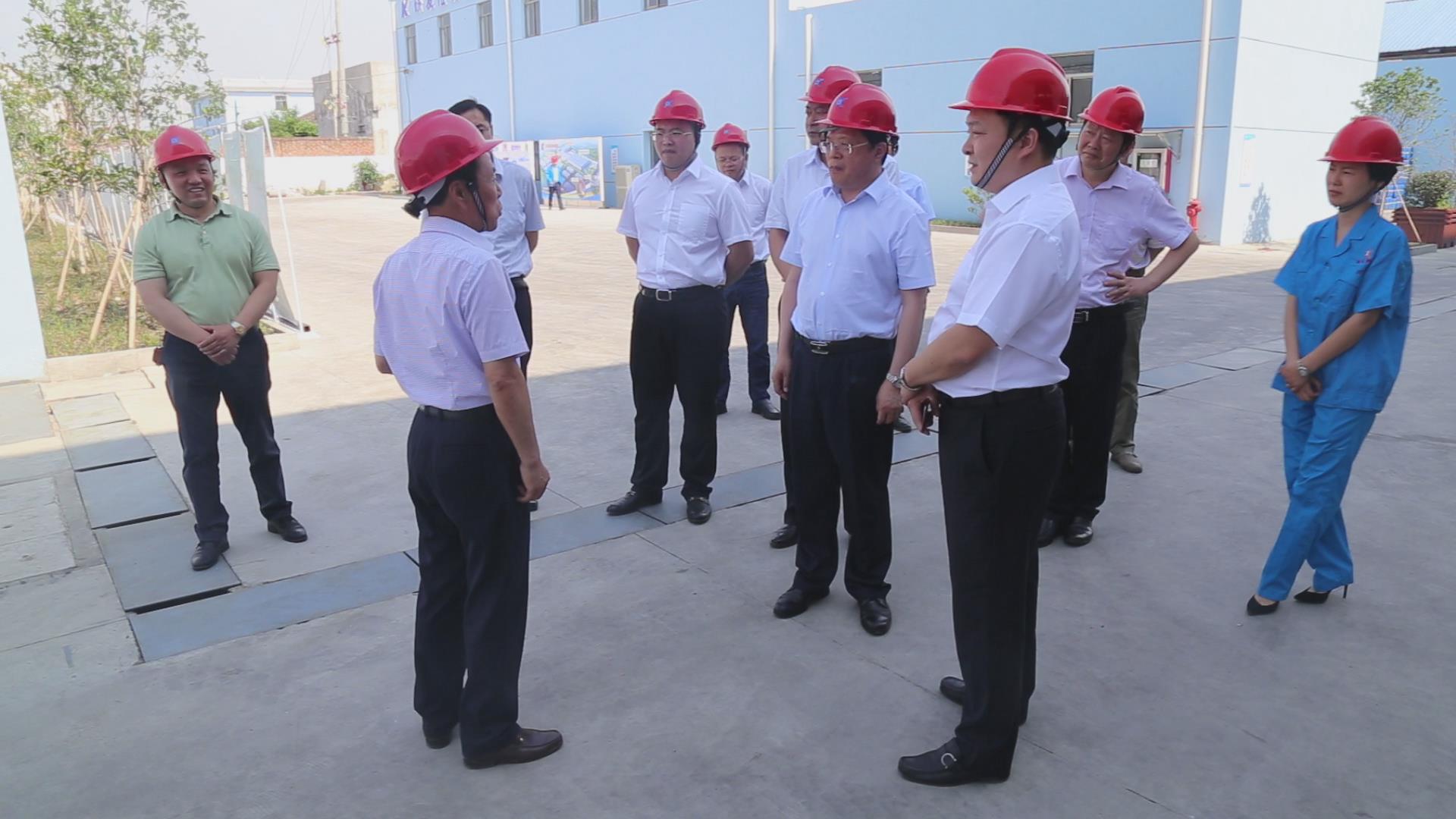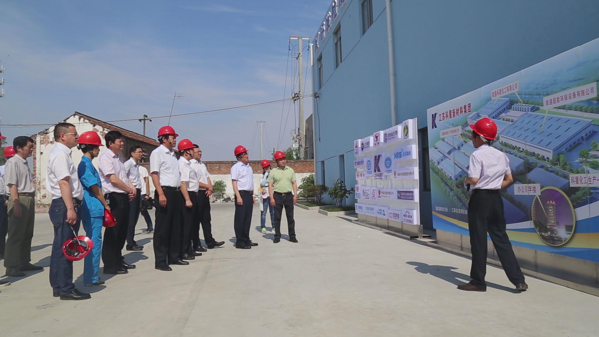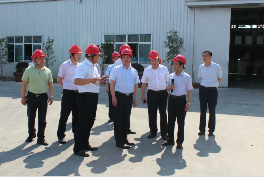 2017年6月16日,中共海安縣縣委副書記、縣長顧國標(右四)一行領導專程來科星化工有限公司深入調研。江蘇科星集團董事長吳龍鐵(右二)陪同縣領導在現場參觀并作詳細介紹。