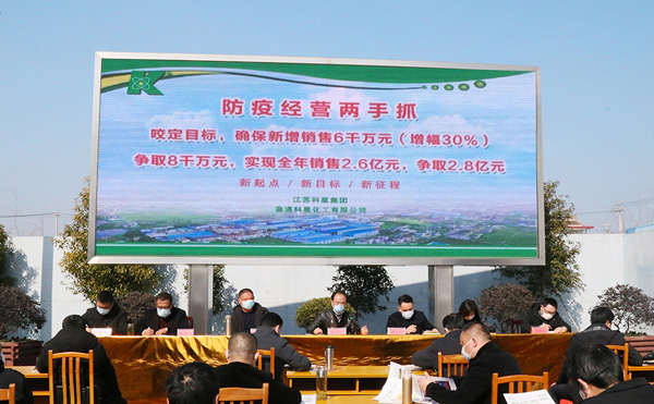 “咬定目標,確保新增銷售6千萬元(增幅30%),爭取8千萬元,實現全年銷售2.6億元,爭取2.8億元。一年的企業靠運氣、十年的企業靠產品、百年的企業靠文化。科星每位員工要肩上都有擔子,心里有動力,前進有方向。才能打硬仗、打苦仗、打勝仗。希望科星人拿出壯士斷腕的勇氣實現全年目標任務”這是南通科星化工總經理在2020年2月20日下午公司召開的動員大會的講話。