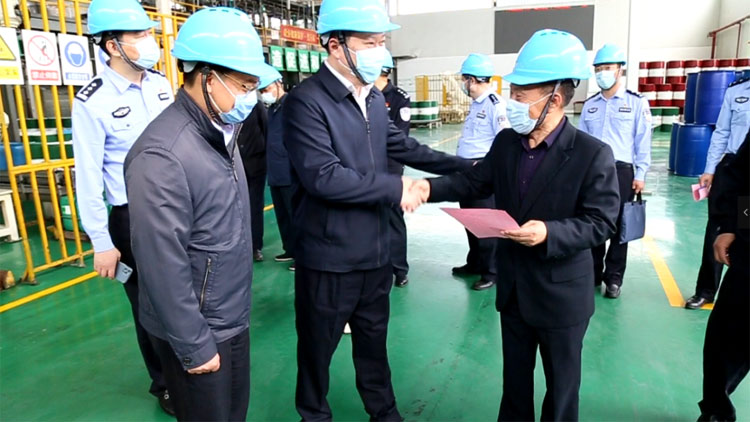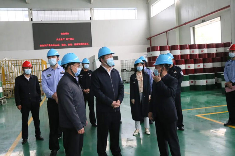 參觀過程中,孫康副市長認真聽取了企業疫情防控、安全生產制度建立、職工安全教育等情況,對生產、管理 、運輸、貯藏等環節的監管措施進行了現場抽查,同時對南通科星“抓牢抓實抗疫防疫工作;產、供暢通穩定生產;保證客戶生產所需產品供應;立足當前謀長遠發展”的“一抗、二穩、三保、四謀”工作,給予充分地肯定。