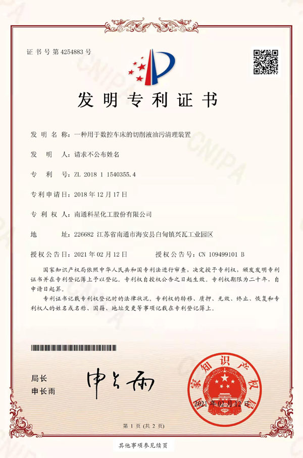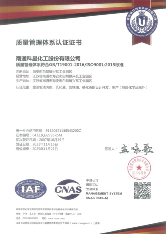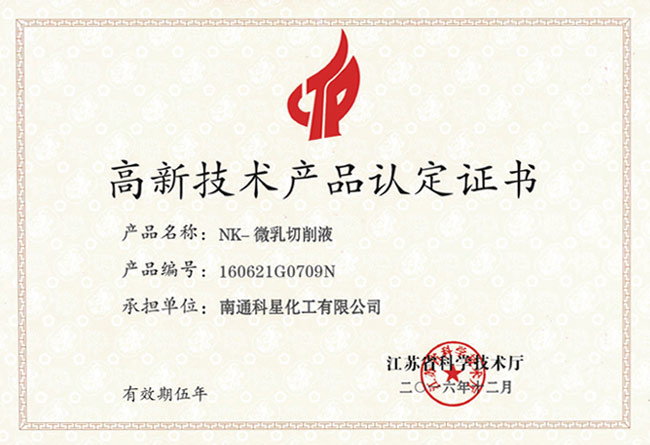 高新技術(shù)產(chǎn)品認(rèn)定證書-NK-微乳切削液