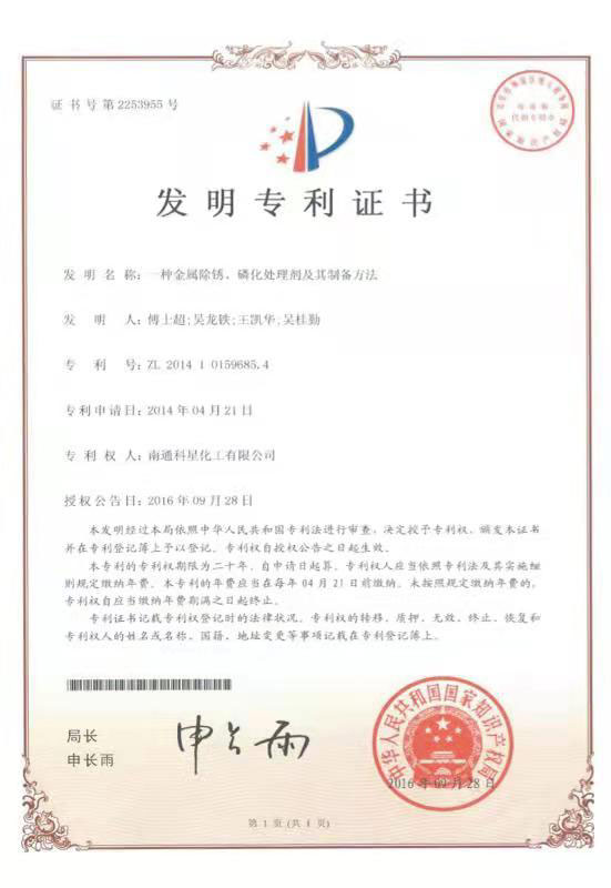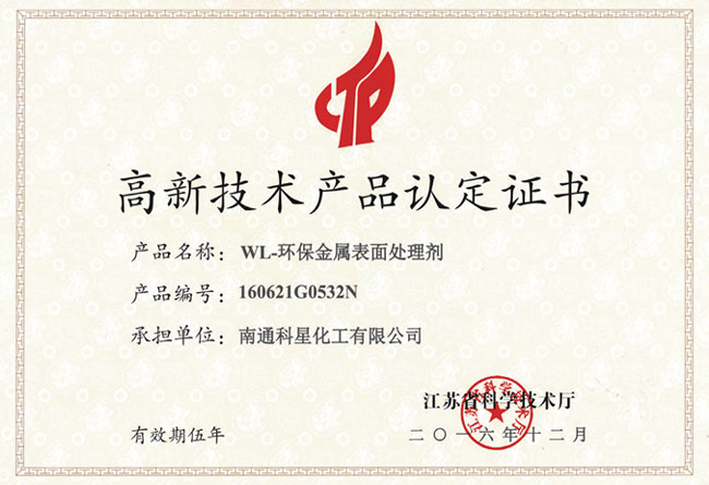 高新技術(shù)產(chǎn)品認(rèn)定證書-WL-環(huán)保金屬表面處理劑