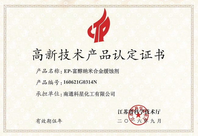 高新技術(shù)產(chǎn)品認(rèn)定證書-EP-富醇納米合金緩蝕劑