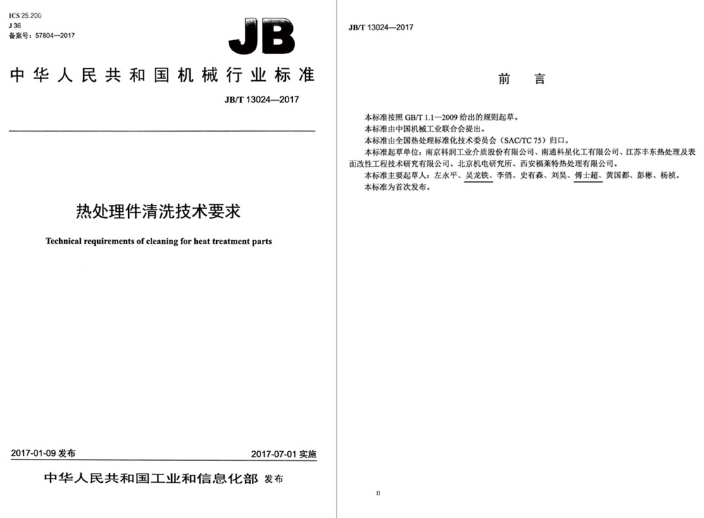 熱處理件清洗行業(yè)標(biāo)準(zhǔn)